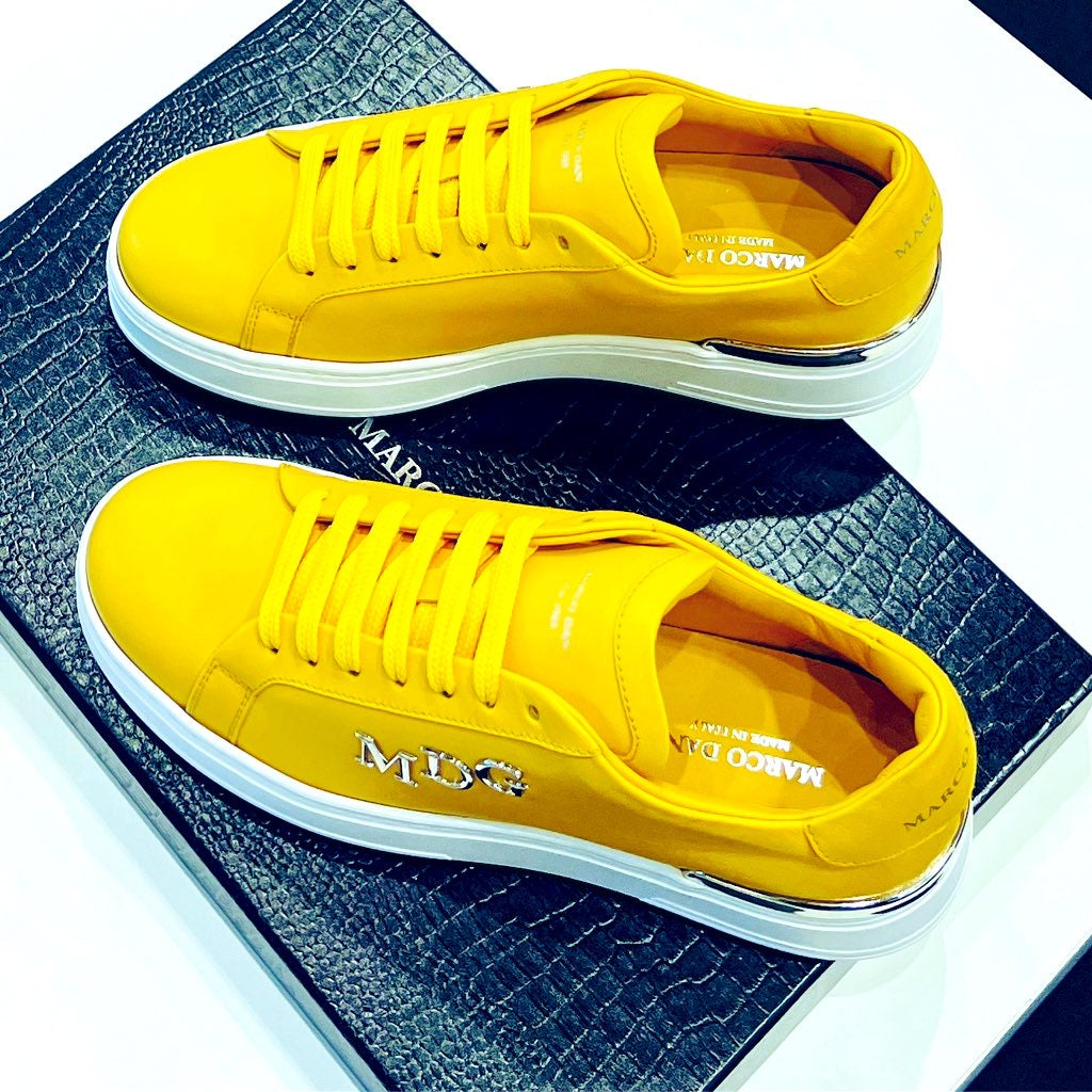Lo-Top Sneaker aus Nappa-Leder produziert in Italien mit eloxiertem Heelcounter kombiniert mit elegantem Design Schriftzug MARCO DAN / MDG.